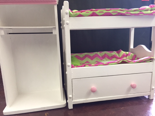 Handmade doll bunk bed and closet