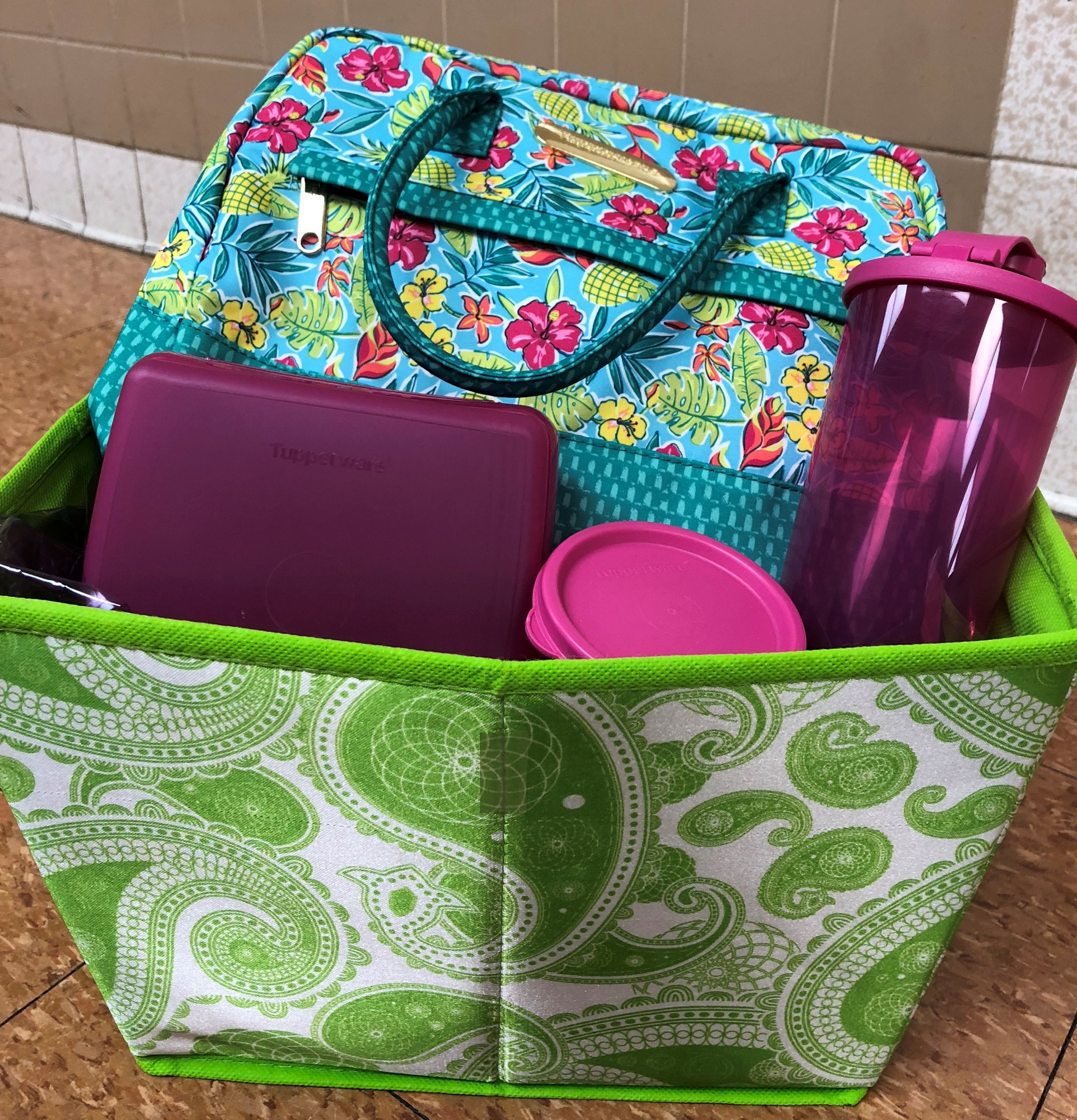 Tupperware Lunch Bag with a Glass, Snack Cup & Sandwich Keeper in a cute tote!
