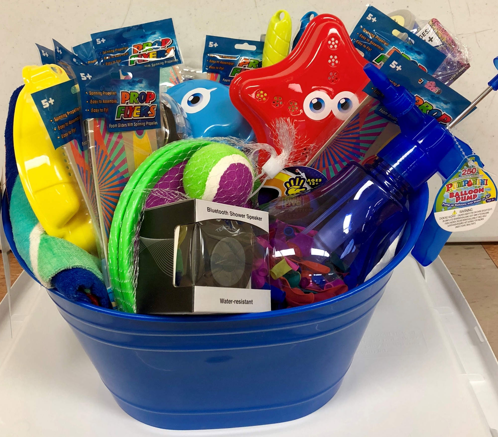 Towel, Sand Toys, Beach Toys, Bluetooth Speaker, Water Balloons, Sidewalk Chalk, Bubble Wands, Gliders